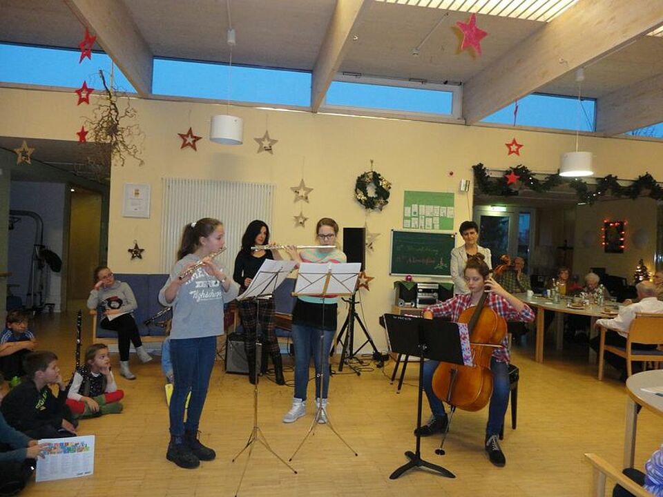 Am Dienstag, den 02 . Dezember 2014 fand im AHZ „Im Olgagarten“ die diesjährige Adventsfeier statt. Bei Kaffee, Gewürzkuchen und Glühwein wurden Weihnachtslieder gesungen, die von Hans Fetzer mit dem Akkordeon und Josef Kotitschke und seiner Gitarre begleitet wurden. Außerdem hatten beide ihre Klarinetten mitgebracht, womit sie auch weihnachtliche Lieder spielten. Höhepunkt war der Auftritt der Schülerinnen und Schüler der Musikschule Steinheim, die unter Leitung von Frau Tashkalova und Frau Schuster wieder ein abwechslungsreiches Programm darboten.