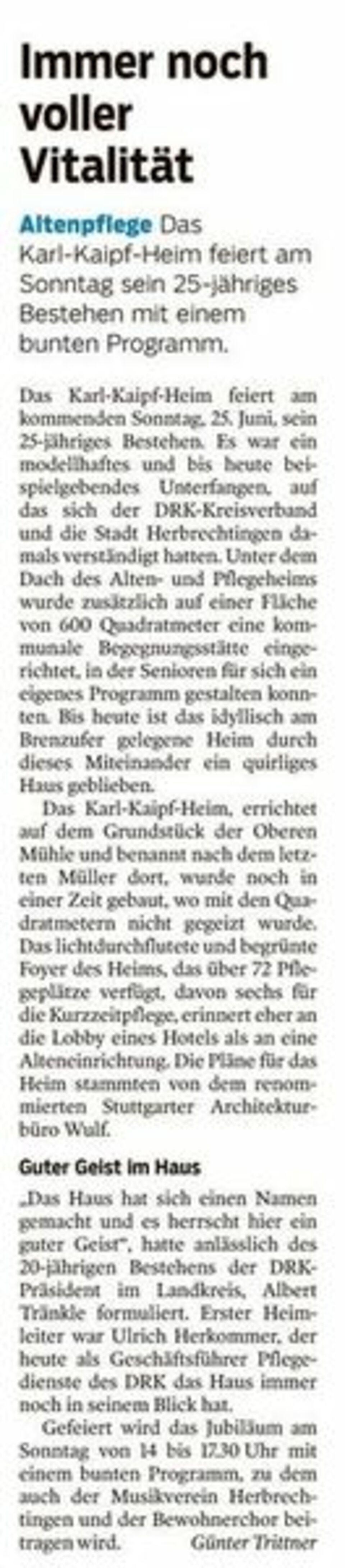 Das Karl-Kaipf-Heim feiert sein 25jähriges Bestehen