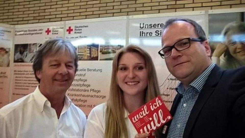 Zahlreiche Betriebe aus der Umgebung präsentierten sich und informierten über Ihre Ausbildungsmöglichkeiten. Auch die DRK Pflegedienste zeigten Präsenz und informierte über die Ausbildungsmöglichkeiten in der Altenpflege. Außerdem bieten die DRK Pflegeheime die Möglichkeit den „Bundesfreiwilligendienst“ oder ein „Freiwilliges soziales Jahr“ zu machen. Den Schulabgängern und Ihren Eltern wurde ein breites Spektrum an Ausbildungsmöglichkeiten vor Ort angeboten. Sie haben die Zeit eifrig genutzt, sich über die Perspektiven für Ihre Zukunft zu Informieren. Im Altenhilfezentrum Im Olgagarten in Steinheim ist aktuell noch ein Ausbildungsplatz zur Ausbildung zur Altenpflegerin bzw. zum Altenpfleger für September 2016 frei. Auch Helfer für ein Freiwilliges Soziales Jahr oder den Bundesfreiwilligendienst werden derzeit noch benötigt.