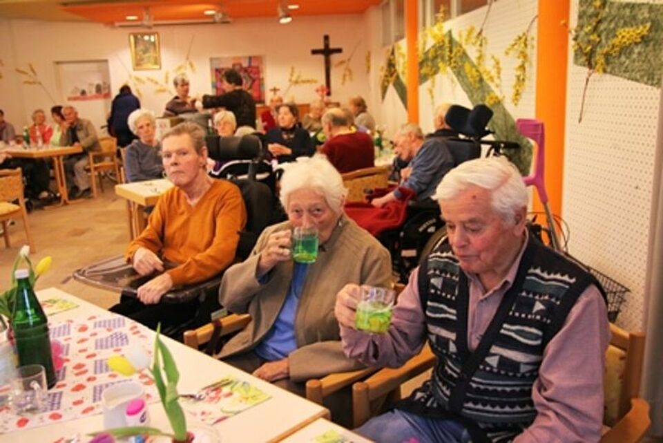 Im Karl-Kaipf-Heim konnte man das Herannahen des Frühlings nicht nur an dem bunten Blumen-Tischschmuck erahnen, auch der Gaumen spürte bei Waldmeisterbowle und Erdbeerkuchen einen Hauch Frische. Frühlingslieder und Gedichte kannten viele von früher, so konnten schnell vertraute Melodien im Raum erklingen.