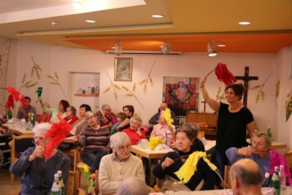 Beim Schlager „Tulpen aus Amsterdam“ wurde jeder Bewohner und die vielen Angehörigen eingeladen, seine Tulpenfarbe erklingen zu lassen. Dies ergab einen wunderschönen optischen Abschluss. Somit erlebten die Gäste einen abwechslungsreichen Nachmittag.